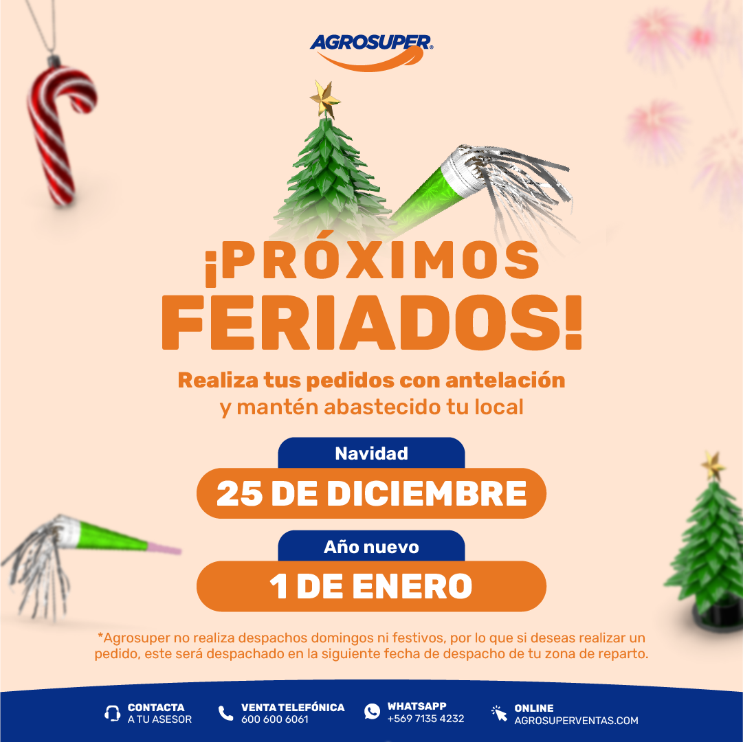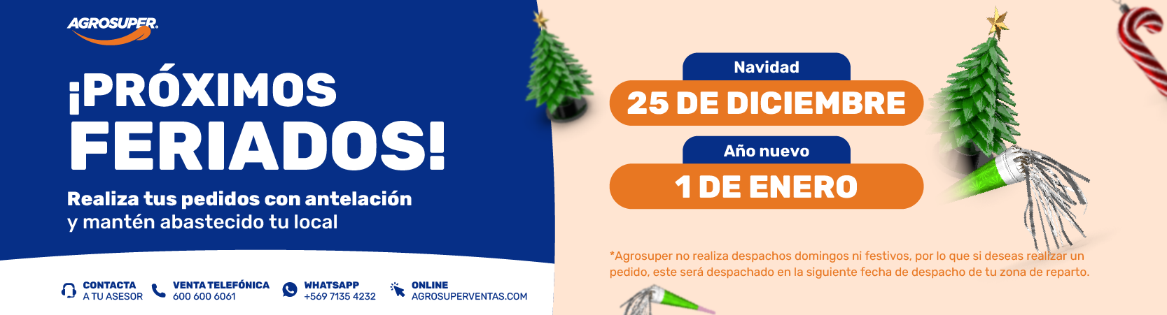 ¡Que no te pille Navidad y Año Nuevo! Anticipa tu pedido hoy y asegura el stock de tu localRecuerda que también puedes realizar tus compras a través de nuestro WhatsApp +569 7135 4232